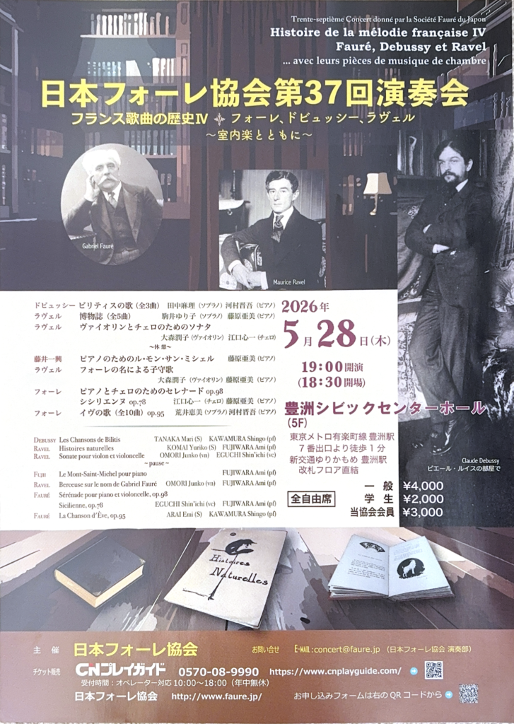 5/28(木)「日本フォーレ協会演奏会」でも歌わせていただくことになりました!