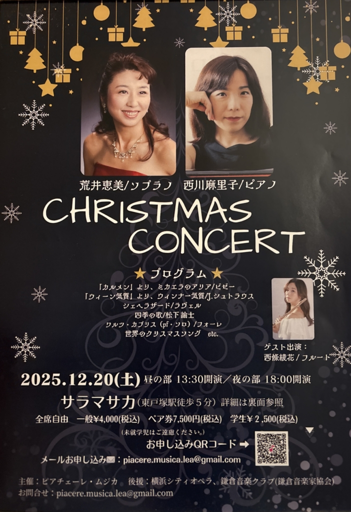 2025.12/20「🎄Christmas Concert」昼と夜、どちらも満席でご来聴頂きまして、有り難うございました。